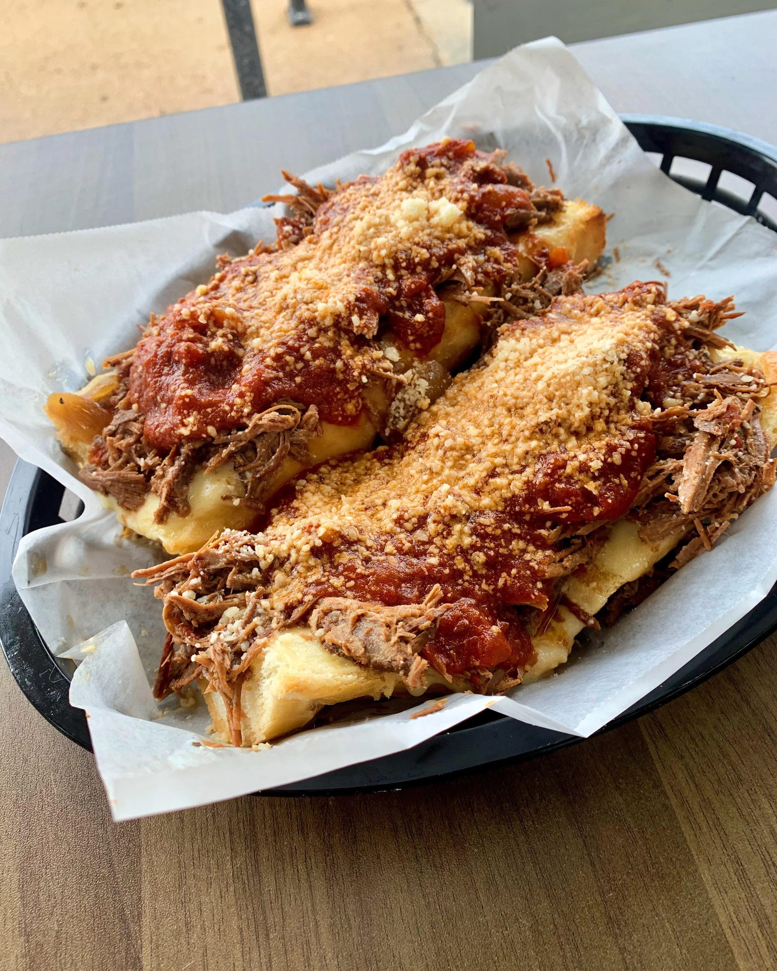 Fino’s has been a Midtown institution for three decades, so the recent preservation by Kelly English of this little piece of local history is a beautiful thing. The Italian Roast Beef is a hot mess, and that’s a compliment. Some people give Fino’s guff for having hard bread. Nah. The Italian Roast Beef’s French roll comes decked out with butter and garlic and develops a pleasant crunch when toasted. It’s also very moist from the mounds of slow-cooked beef. This sandwich is reminiscent of a Chicago beef, dipped, with peppers that someone had the creative insight to cover in marinara meat sauce and two types of cheese (Provel down below and a generous caking of Parmesan on top). This sandwich is a savory, acidic trip with just enough integrity in the bread to keep it from falling apart when you pick it up. If you’re not a messy sandwich expert and value your clothes, you should still use a knife and fork.