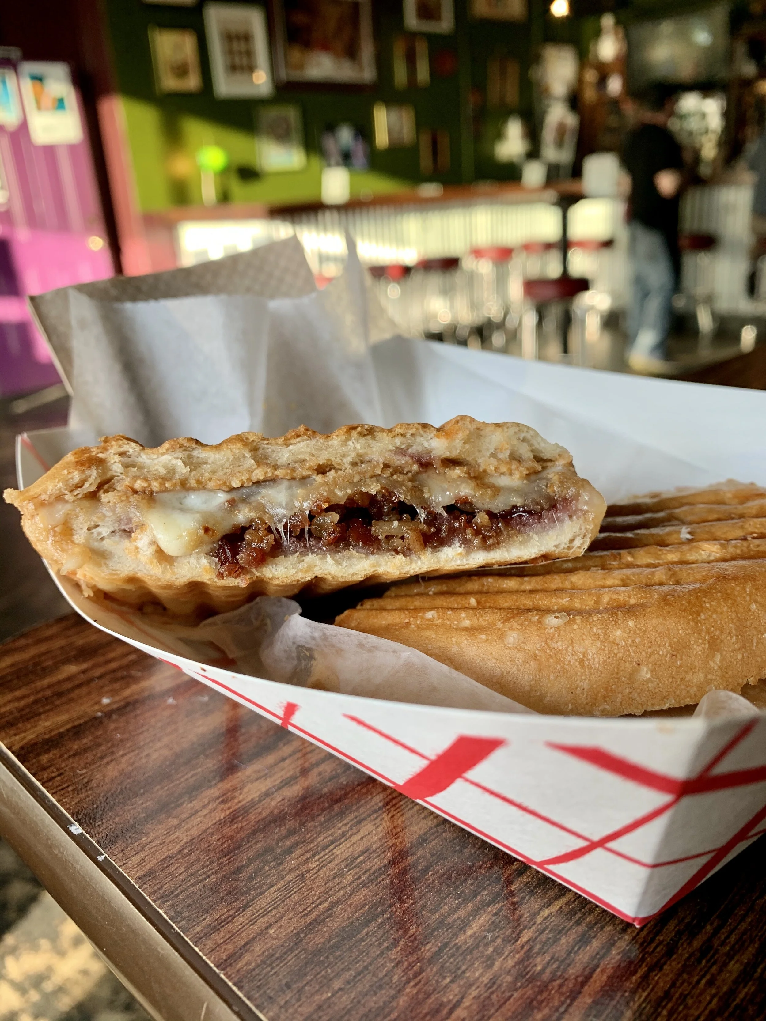 The Hi Tone is a good place to see a punk show, and for the past year or so it has been an excellent place to get a sandwich. The Hi Tone kitchen operates under Joshua McLane, a local comedian and musician who named the best sandwich on the menu after his popular two-piece band, HEELS—and, yes, that is a reference to professional wrestling. This is Memphis. The sandwich is aptly named because, like the band, it’s a complementary partnership between two different things. It’s part PB&J, part bacon melt, and pressed between buttered bread slices. The genius of this sandwich is the way the ingredients work together. The jam is infused with jalapeño, which complements the savory ingredients, and both provolone and bacon have sweet elements which complement the peanut butter and jelly. An excellent way to avoid a hangover or, if you don’t live the rock ’n’ roll lifestyle, a pleasant break from the beaten path.