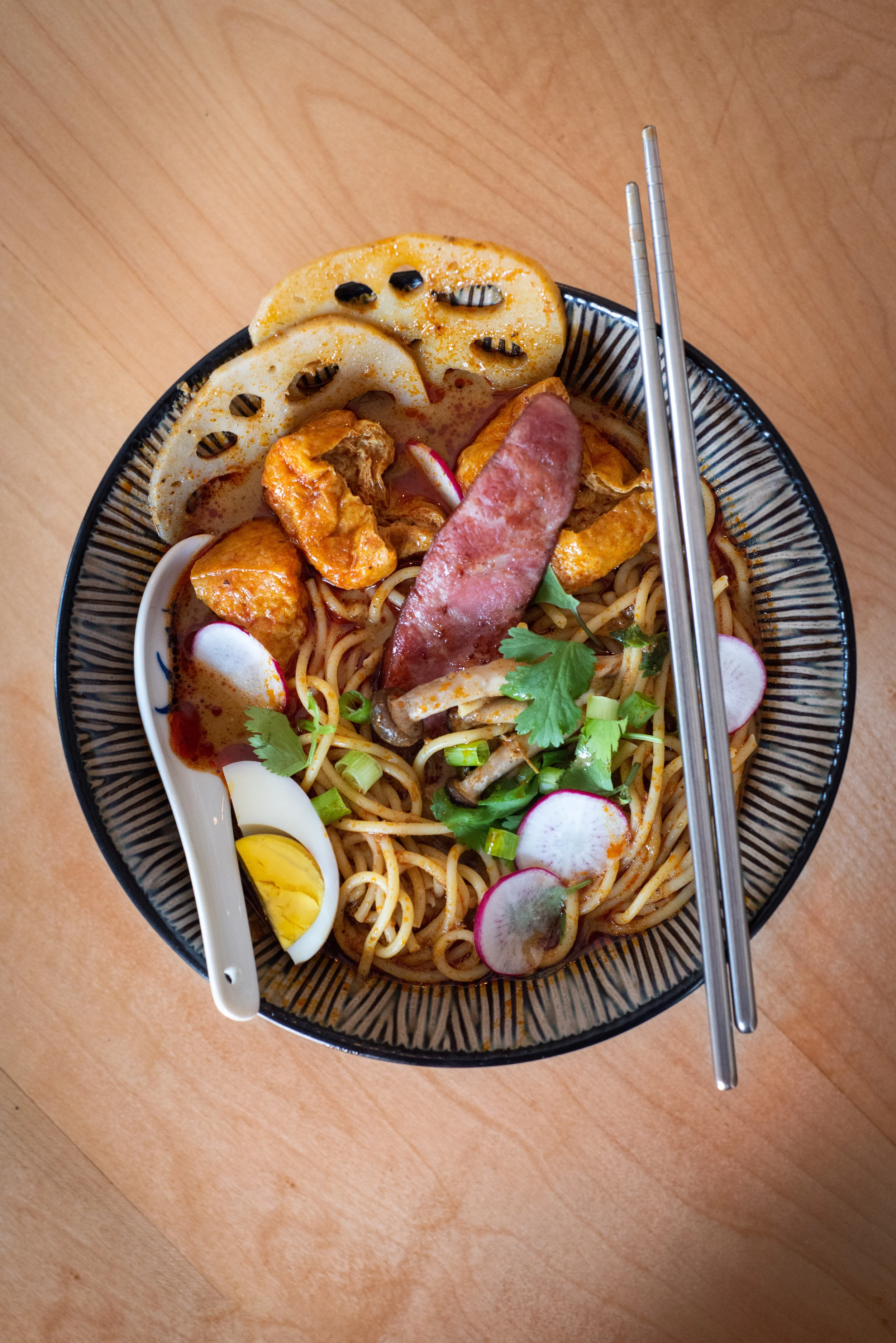 Kong Wee: I never cooked back home. I lived with my Grandma, six aunts and uncles—a lot of family in close quarters who took care of the cooking. I recall watching them cut vegetables and cook in the giant wok we had. I first cooked for myself when I moved to Japan when I was around 15 or 16 years old. I was a part of a student exchange program and had to contribute. I cooked by feel, using curry powder and an array of Malaysian ingredients. My host family hated it when I cooked because it usually took me around two hours to finish. However, they did love my food. I’m still close to my Japanese family today. I also lived in Singapore where the food culture was like one big food court.